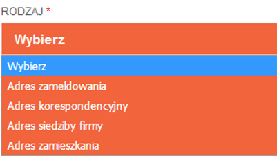 Kliknięcie w tę ikonę w bloku ADRESY otwiera okno, w którym wybieramy rodzaj adresu jaki chcemy dodać: