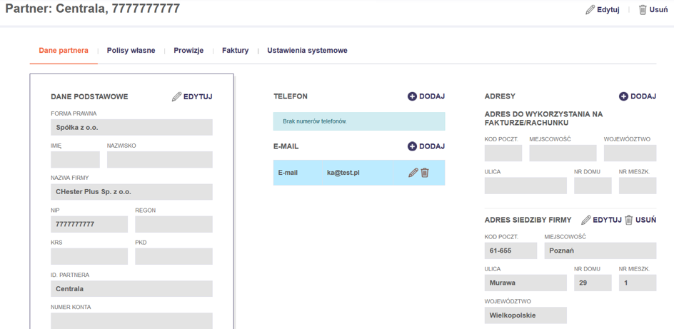 Zarządzanie Kartoteką Partnera odbywa się po kliknięciu w ikonę: .