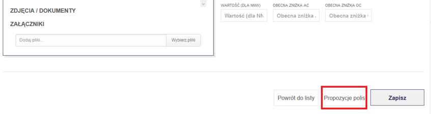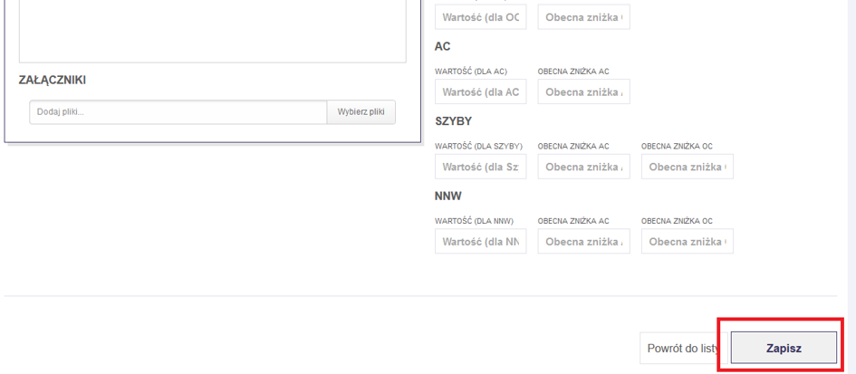 2.5. Aby zachować propozycję polisy należy kliknąć na dole strony „ZAPISZ”