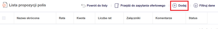 2.3. W następnym kroku należy kliknąć „DODAJ” na aby przygotować propozycję polisy: