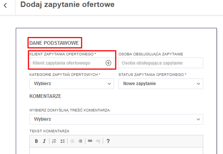 1.2.1. W pierwszej kolejności należy wybrać Klienta już istniejącego lub dodać nowego: