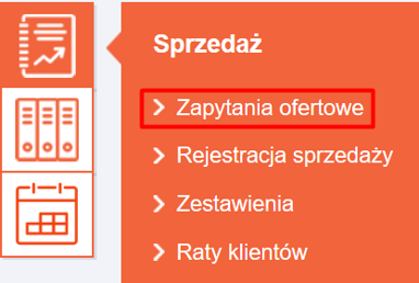 Zarządzanie zapytaniami ofertowymi odbywa się przez dedykowany moduł dostępny po kliknięciu ikony Sprzedaż po lewej stronie głównego ekranu i wybór opcji Zapytania ofertowe.