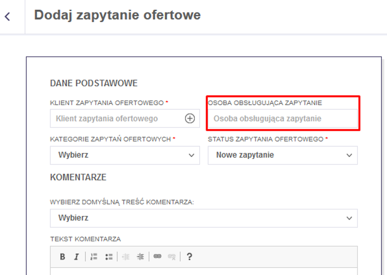 Można również dodać komentarz oraz załączyć plik np. z ofertą z systemu TU.