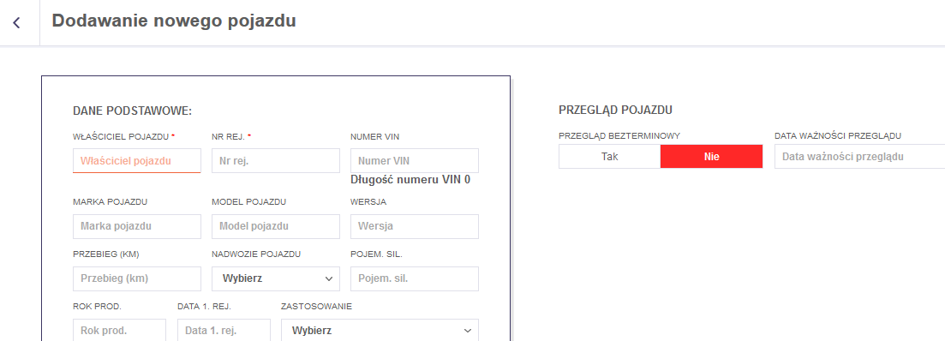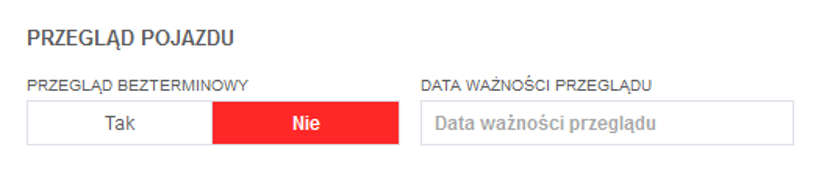 W sekcji po prawej stronie można dodać datę ważności przeglądu pojazdu, zaznaczając w pierwszej kolejności czy coroczny przegląd jest wymagany czy nie: