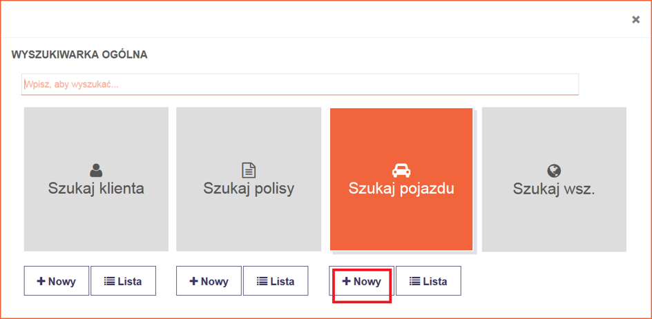 WŁAŚCICIEL POJAZDU* – wyszukujemy z listy wpisując np. nazwisko, nr PESEL lub NIP