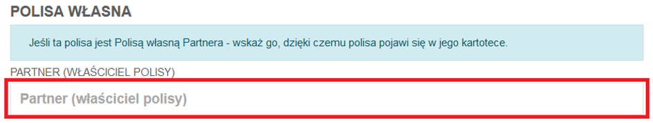 1.4. Jeśli rejestrowana polisa dotyczy życia i majątku samego Partnera to wprowadza On swoje imię i nazwisko lub PESEL/NIP (tzw. polisa własna)